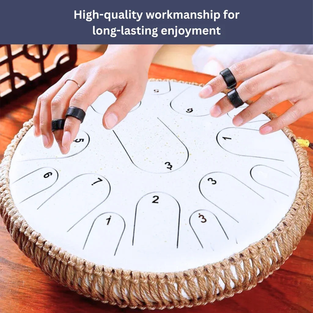 The tongue drum is made of titanium steel, ensuring high durability and a clear, consistent sound.