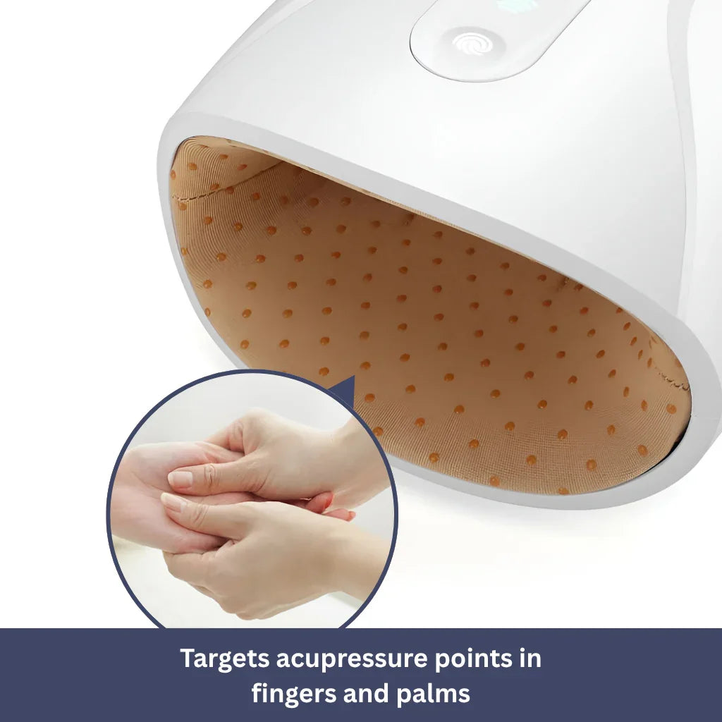 Simply place your hand inside the device, aligning your palm with the center of the massage pad.