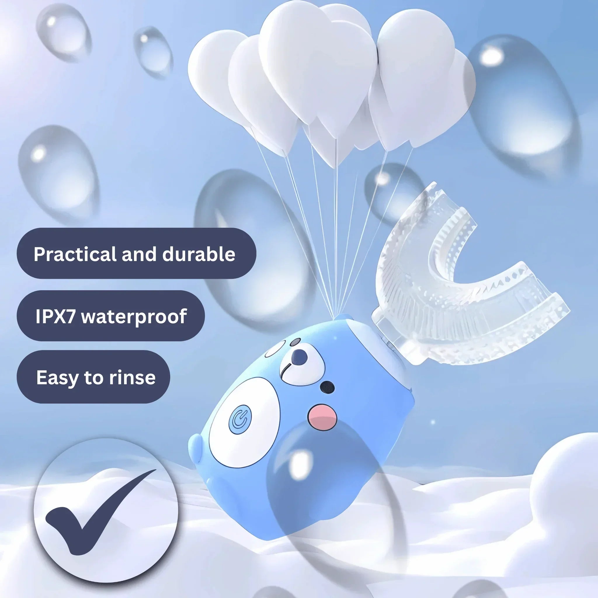 The HappyZahn 360 is IPX7 waterproof and can be easily rinsed after brushing.