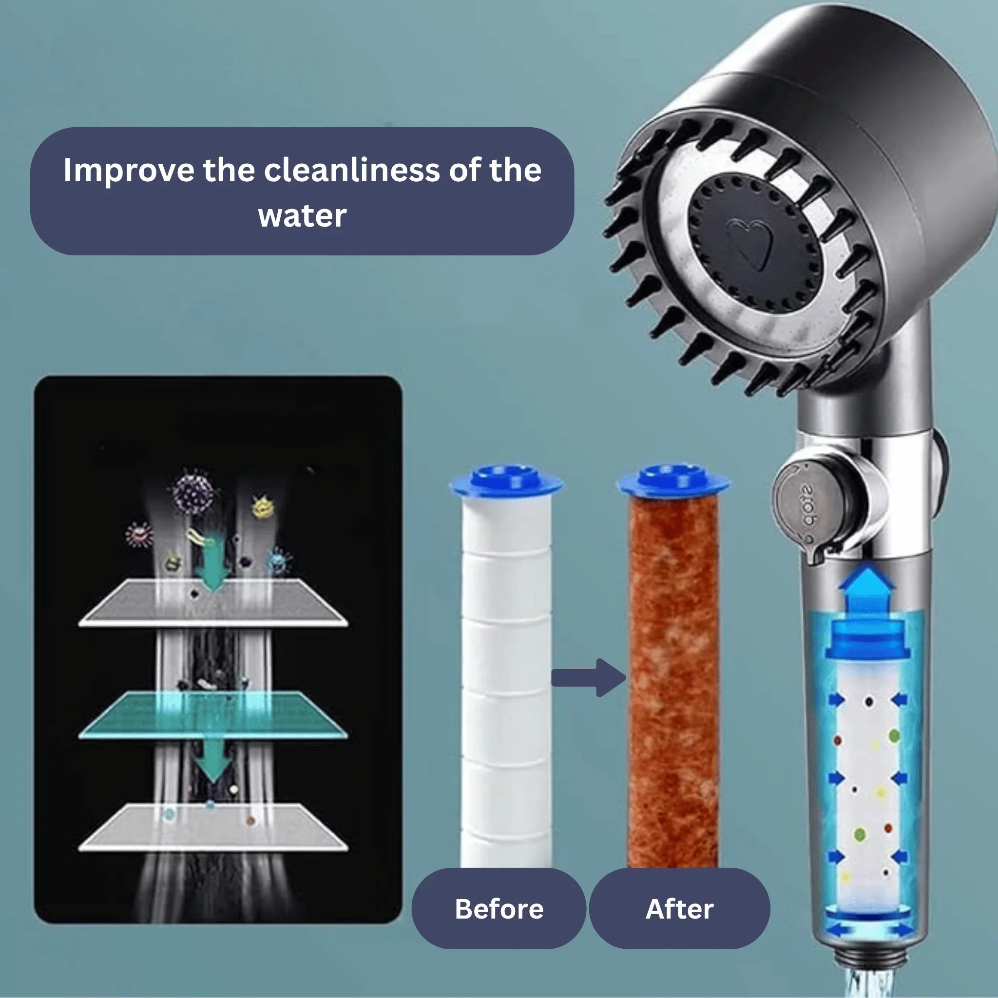 The filters reduce chlorine, heavy metals, and impurities, keeping your skin and hair protected from dryness and irritation.