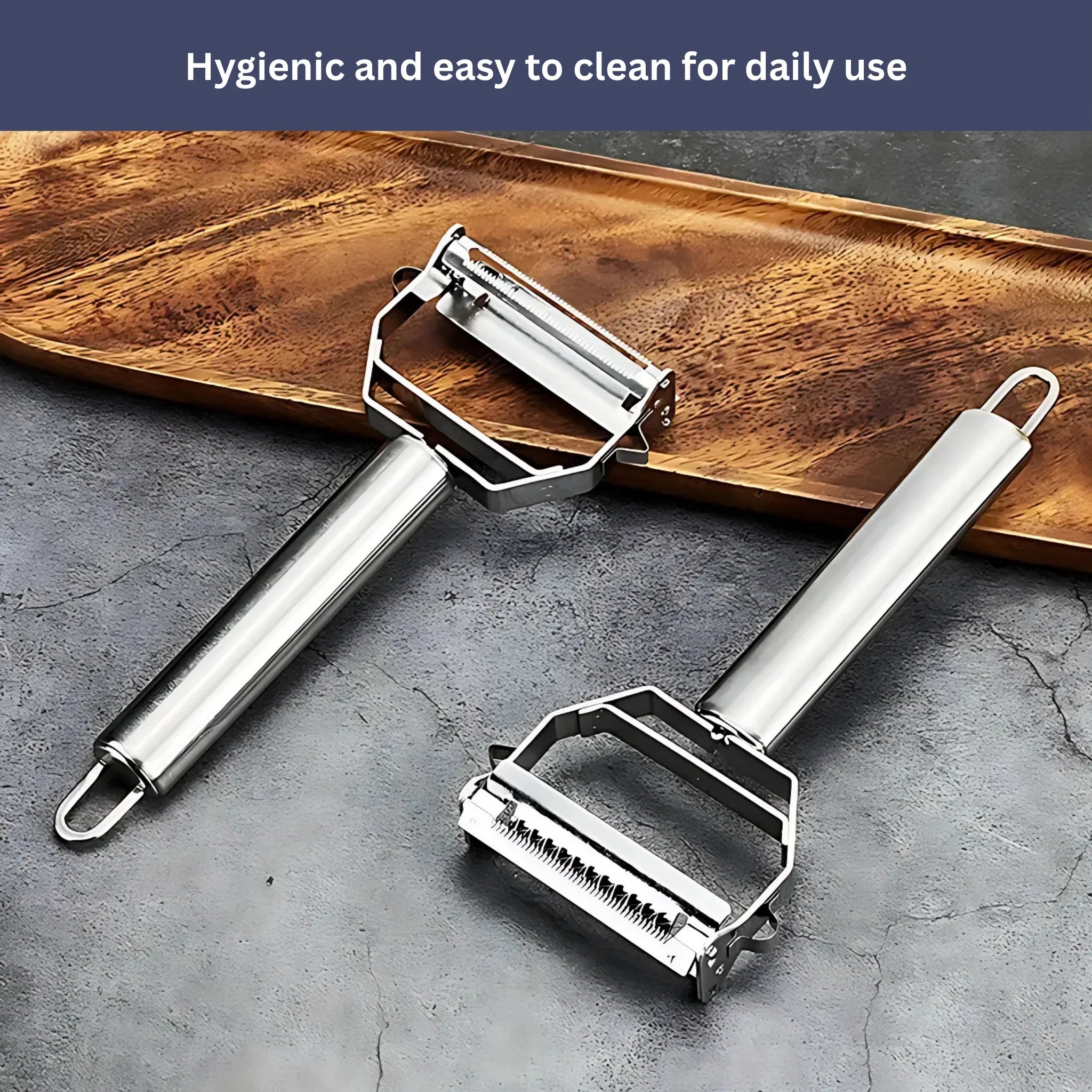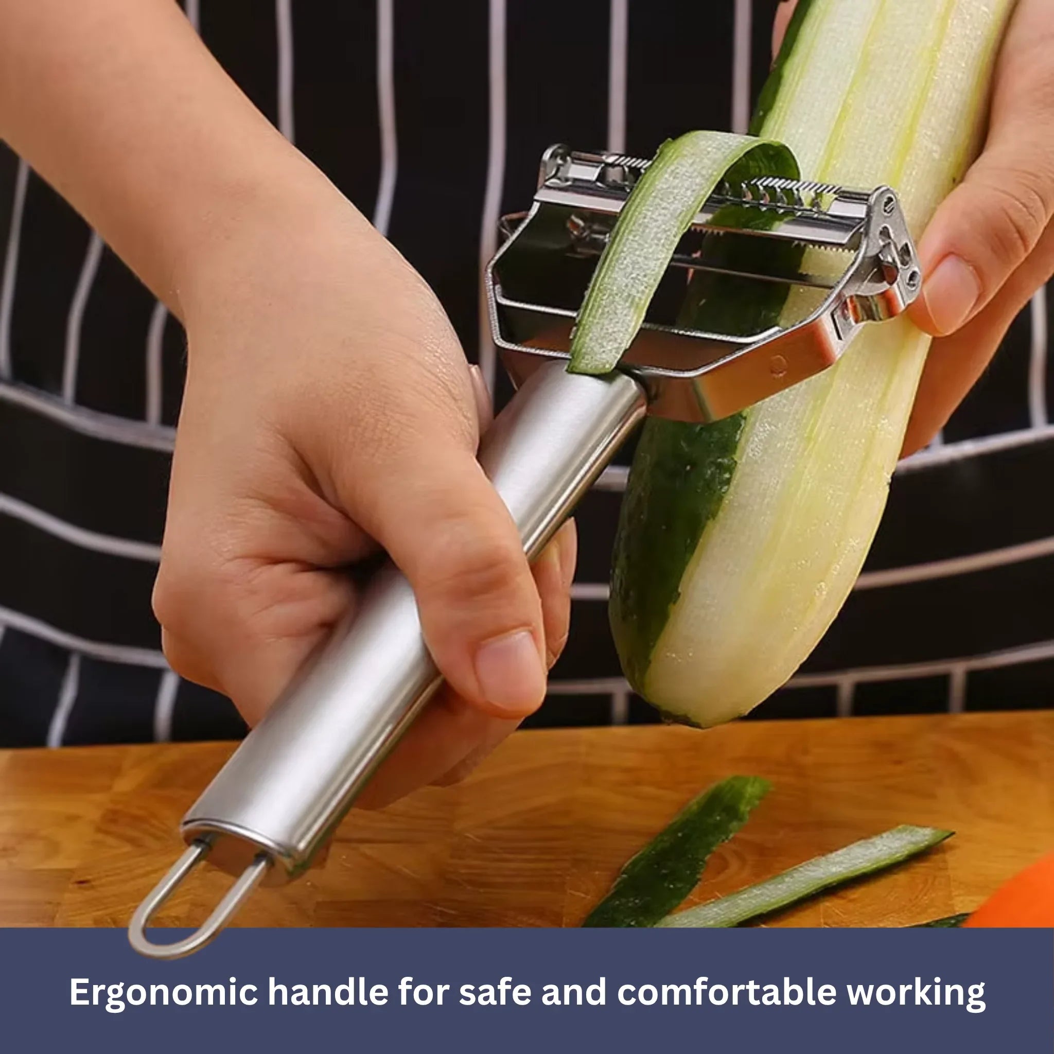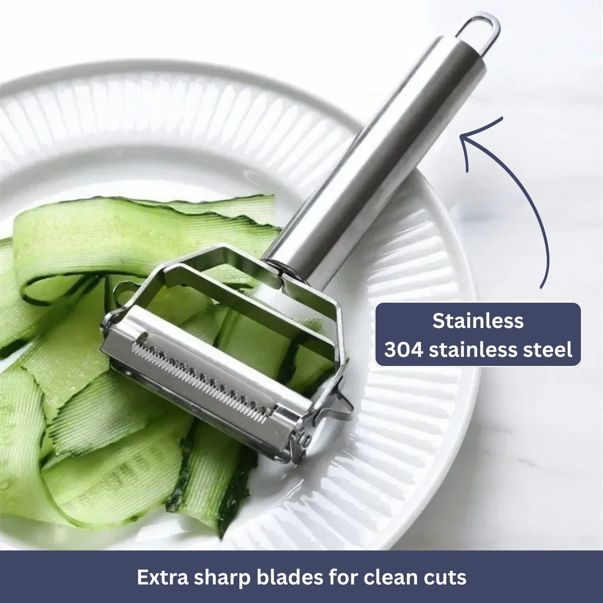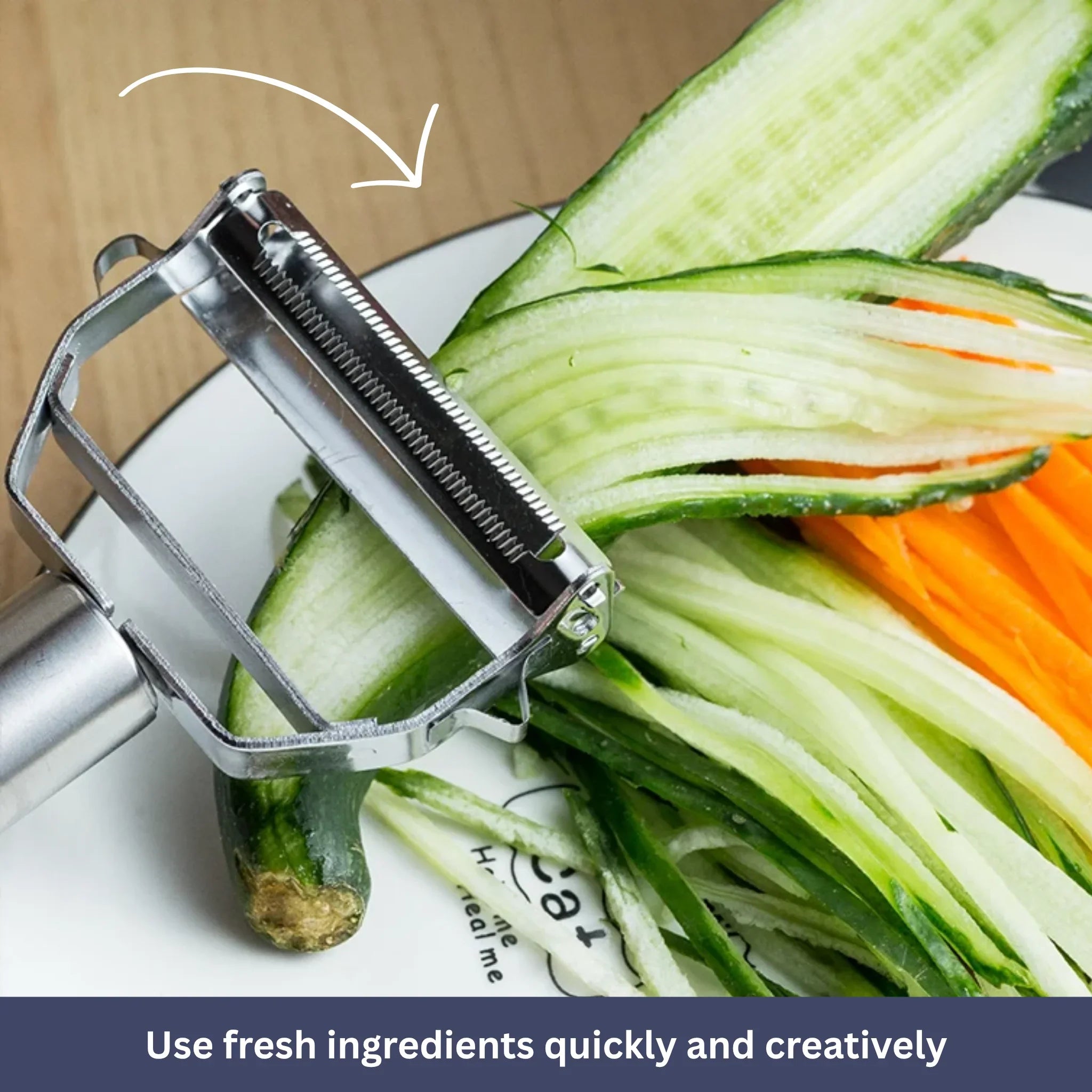 One side is ideal for peeling fruits and vegetables, while the other quickly creates uniform julienne strips – perfect for crisp salads, Asian dishes, or veggie noodles.