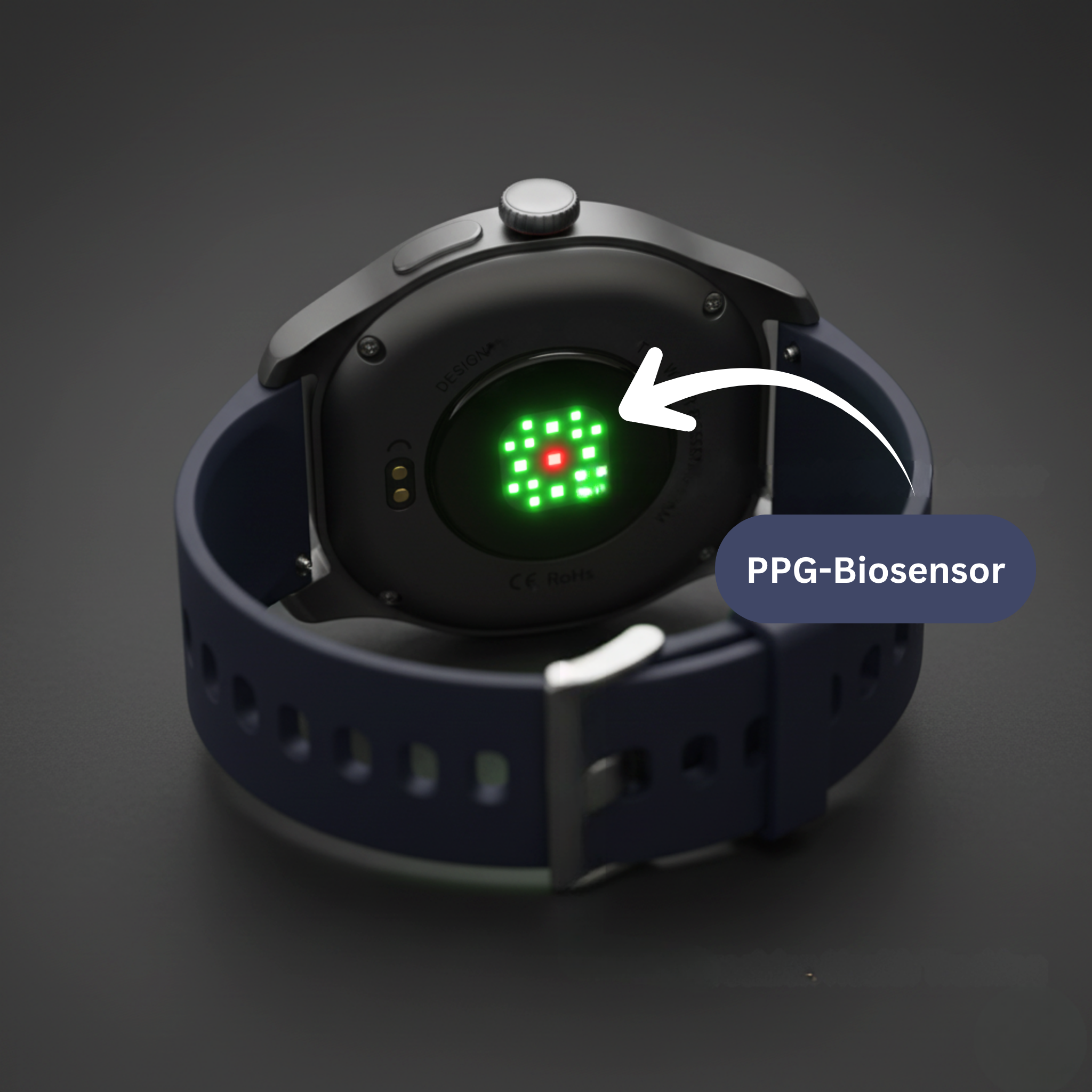 The VitalPulse Watch tracks your stress levels using heart rate variability (HRV) and shows when your body needs recovery.