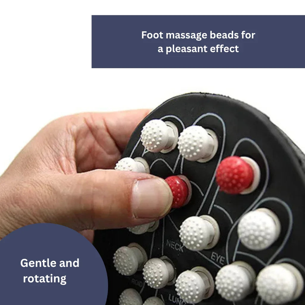 The waterproof upper material protects against moisture, while the rotating massage beads offer a targeted foot massage.