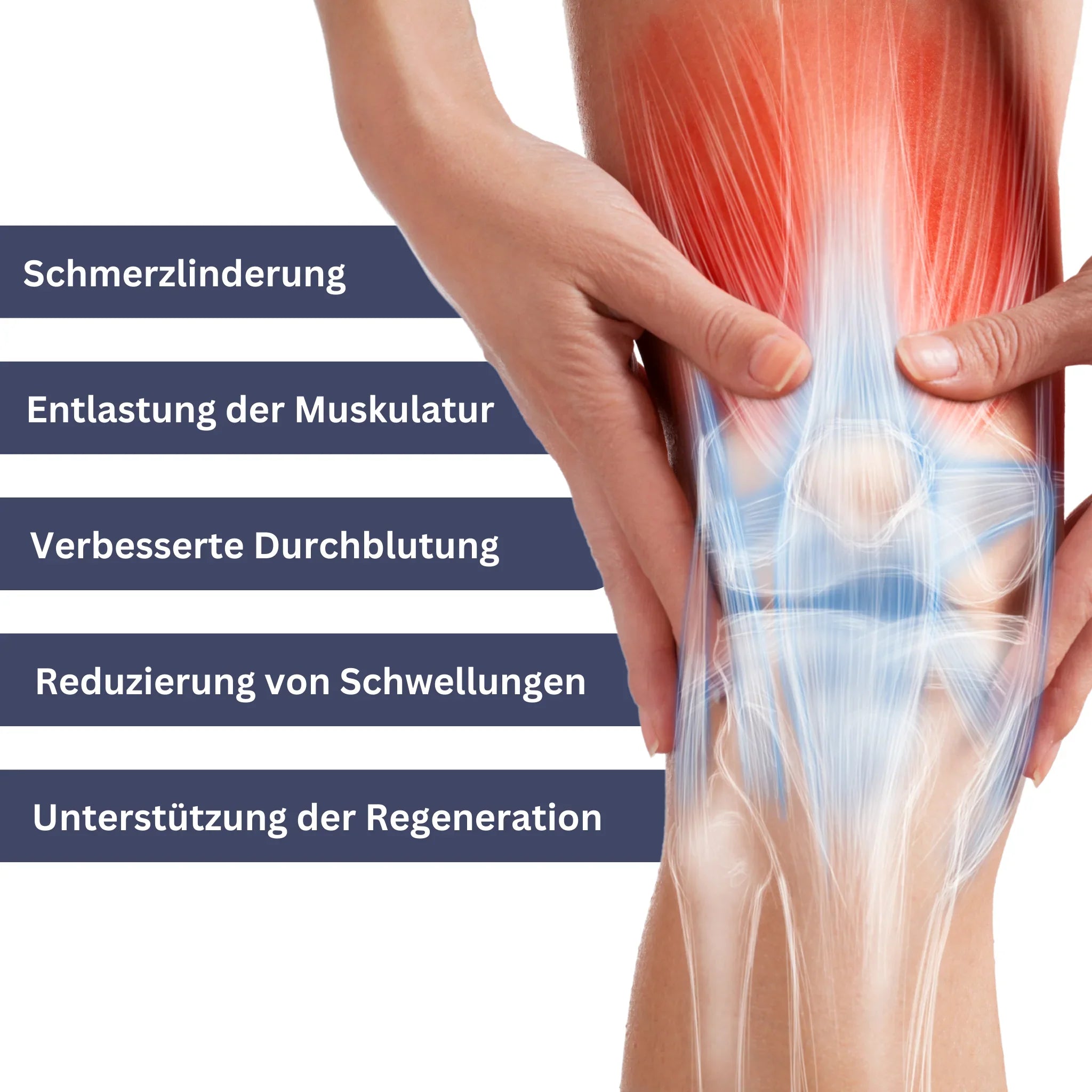 Sie hilft bei Arthrose, Verstauchungen, Bänderrissen, Sehnenentzündungen, Schwellungen und unterstützt dich optimal nach Verletzungen oder Operationen.