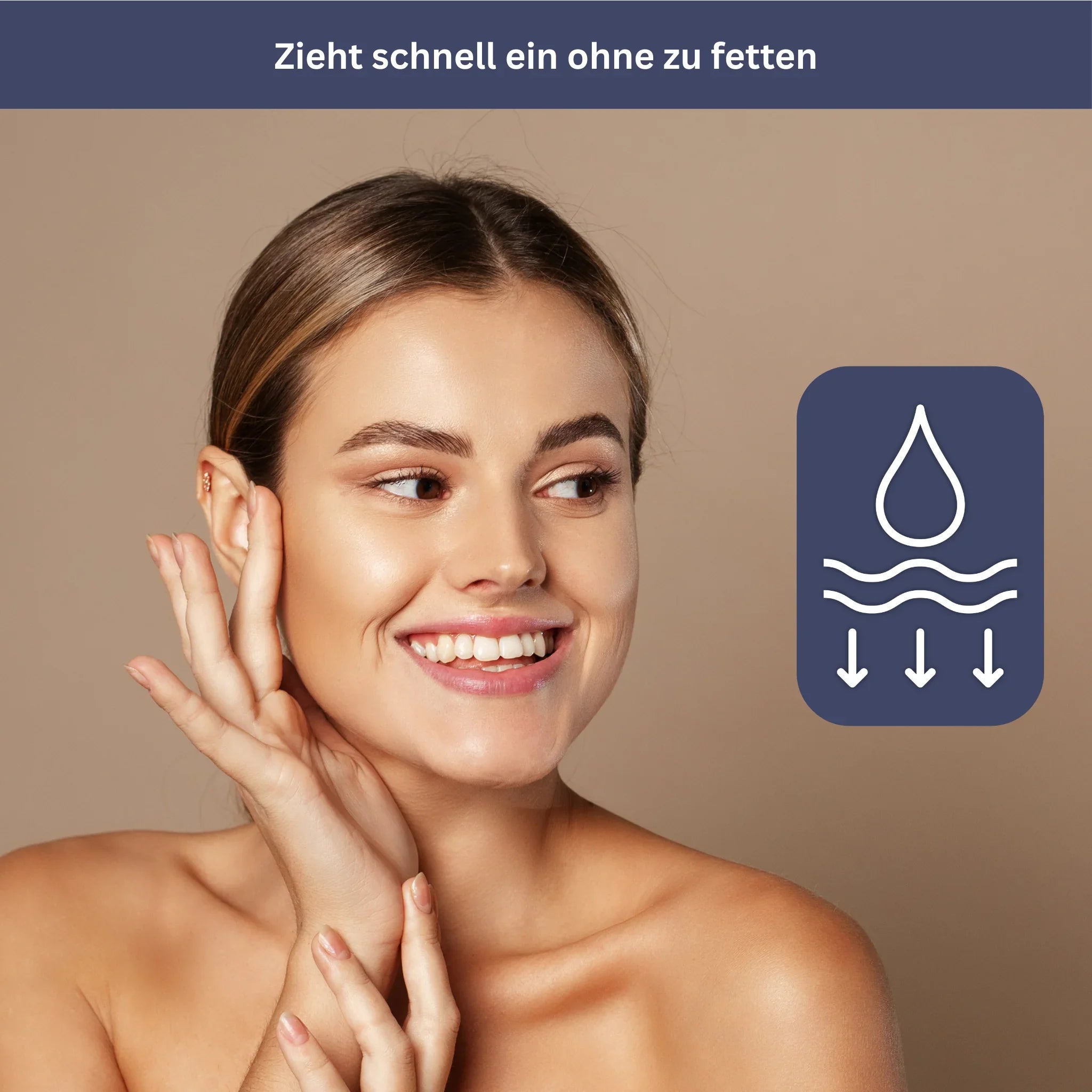Das Ergebnis ist eine widerstandsfähige, glatte Haut ohne fettigen Rückstand.