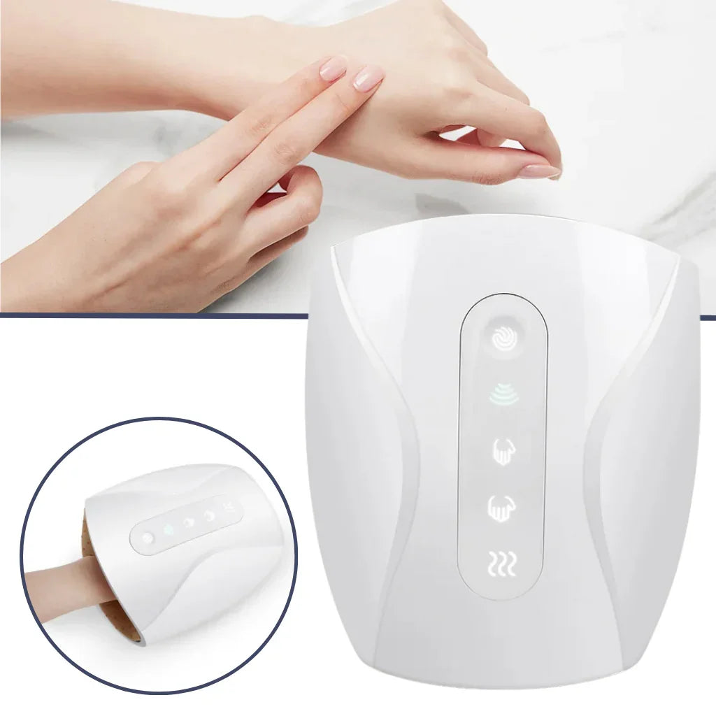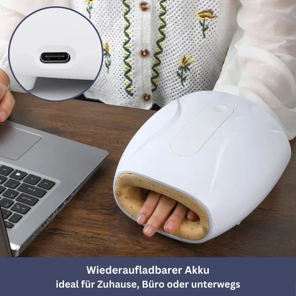 Das Handmassagegerät nutzt Luftkompression und Wärme, um eine entspannende Massage zu bieten.
