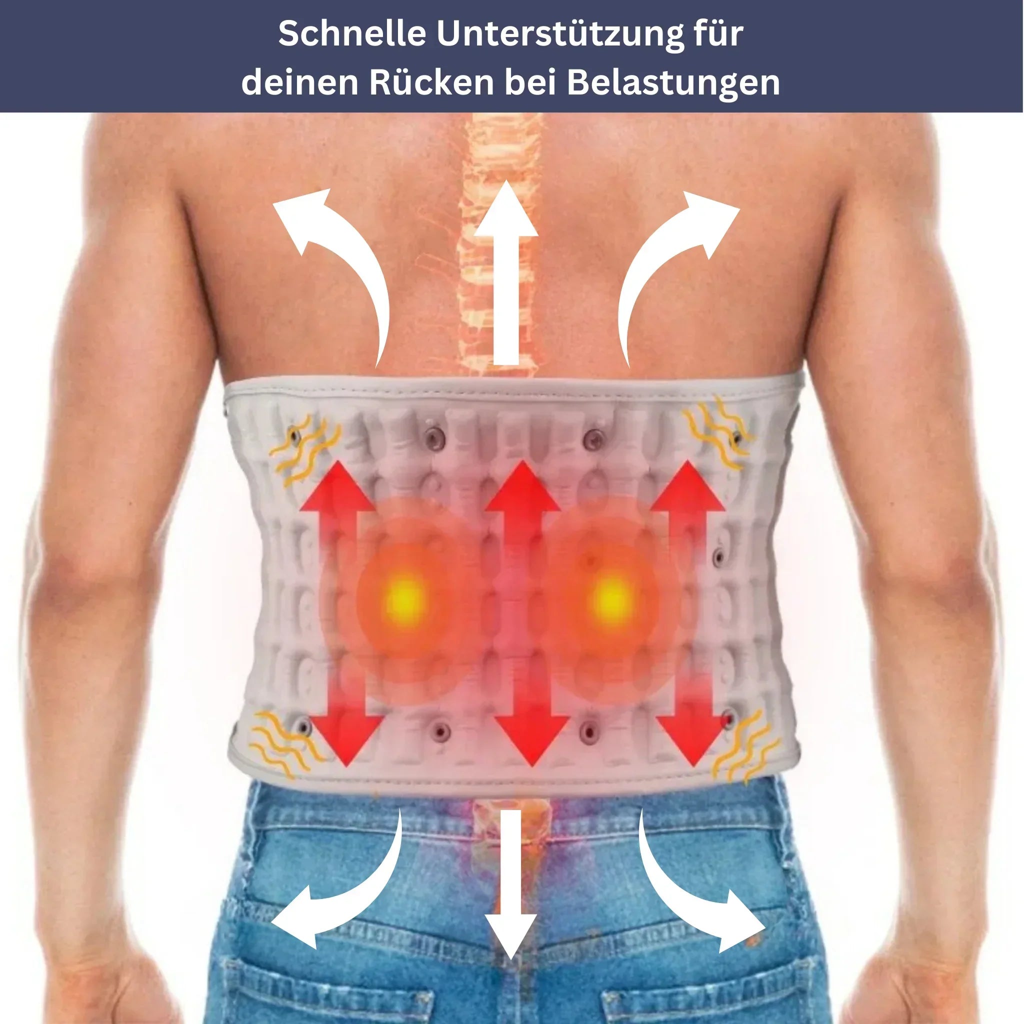 Der Gurt nutzt eine innovative Aufblas-Technologie, um deine Wirbelsäule sanft zu dekomprimieren.