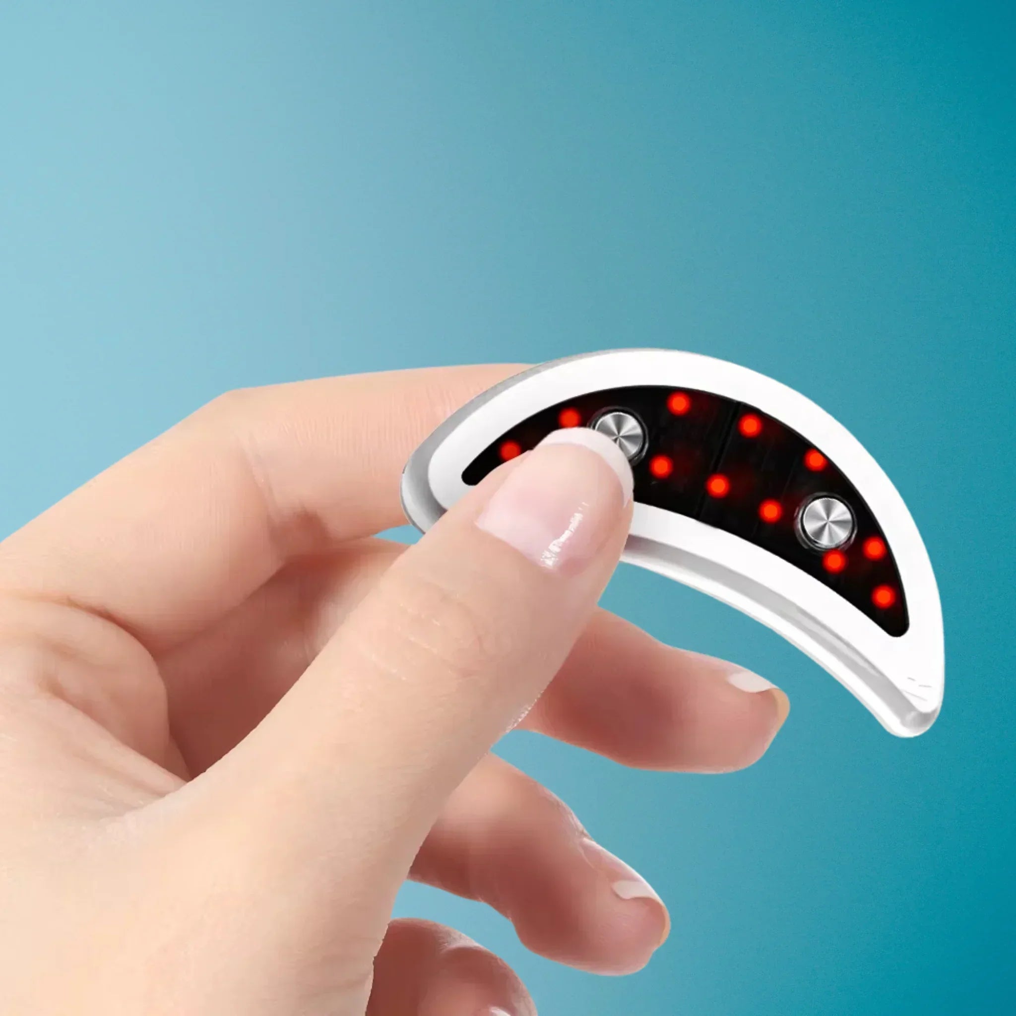 Mit EMS-Impulsen und wohltuendem rotem Licht fördert es die Durchblutung, glättet feine Linien und reduziert effektiv Augenringe und Tränensäcke.