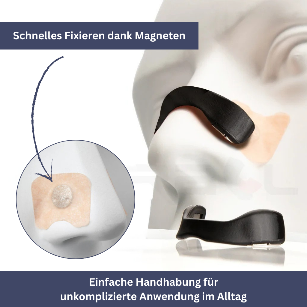 Der Nasenpflaster-Dilatator erweitert sanft die Nasenhöhle, optimiert den Luftstrom und unterstützt eine freiere Atmung.