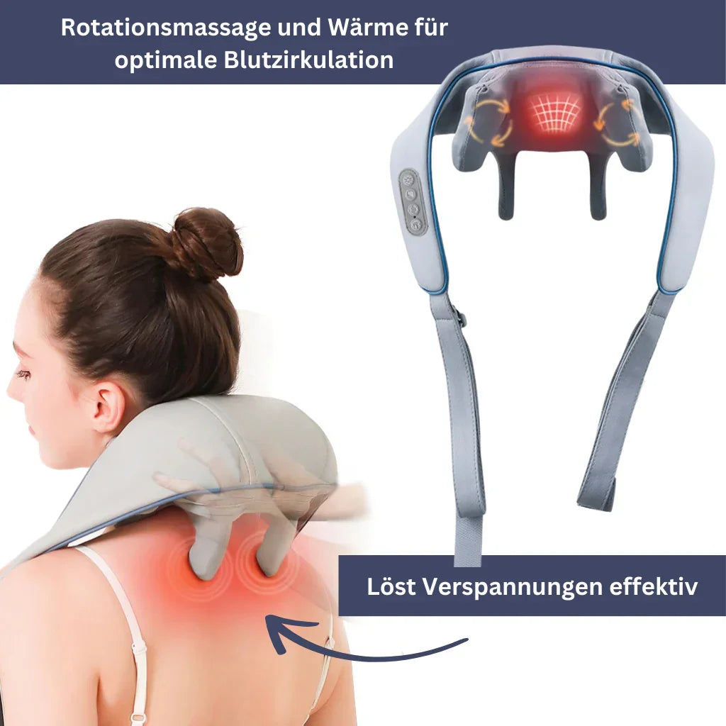 Die Kombination aus Rotationsmassage und Wärme fördert die Blutzirkulation und beschleunigt die Muskelregeneration, wodurch Verspannungen effizient gelöst werden.