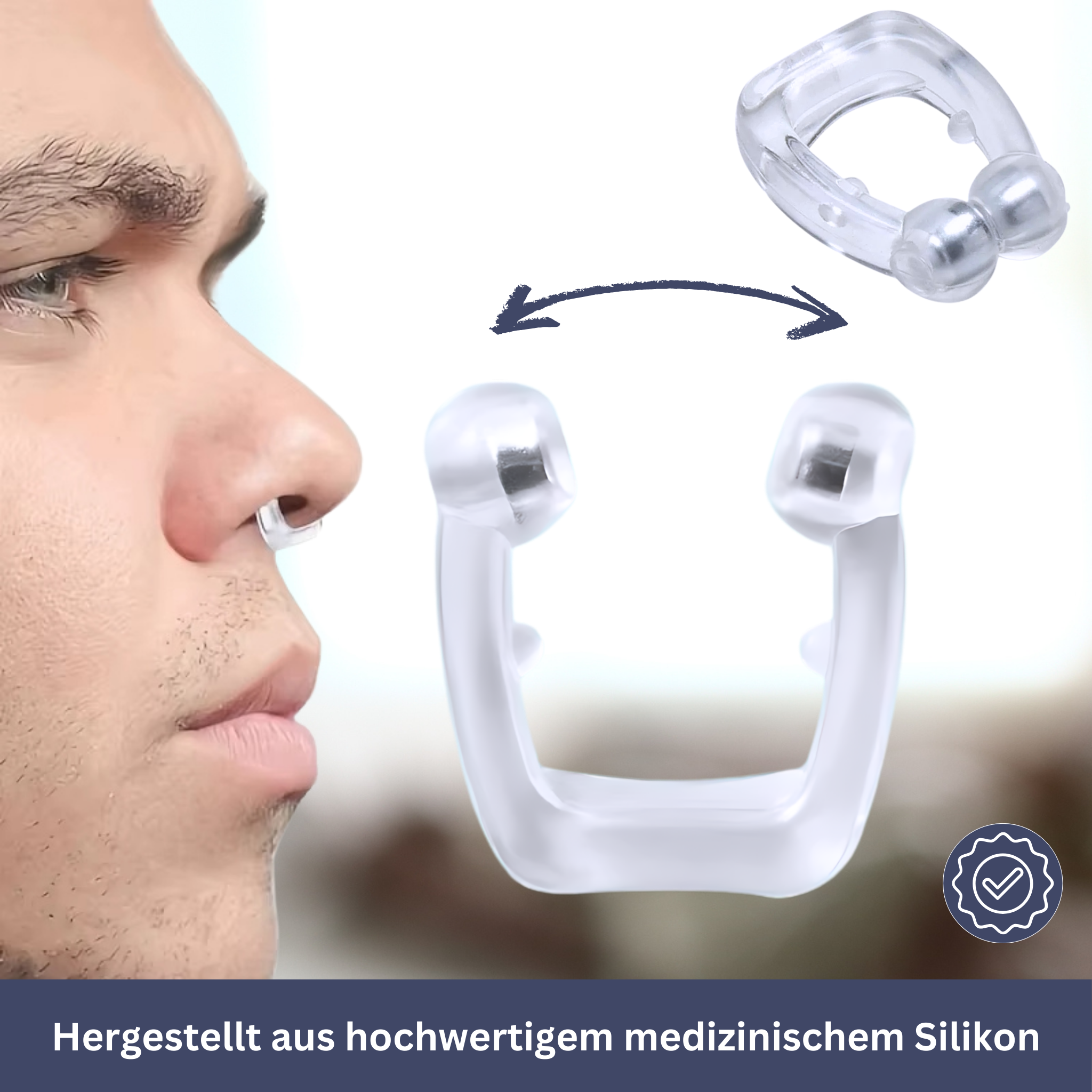 Der SilentBreeze Magnetische Schnarchstopper hilft dir, das Schnarchen zu reduzieren und deine Atmung zu verbessern, damit du erholsam schlafen kannst.