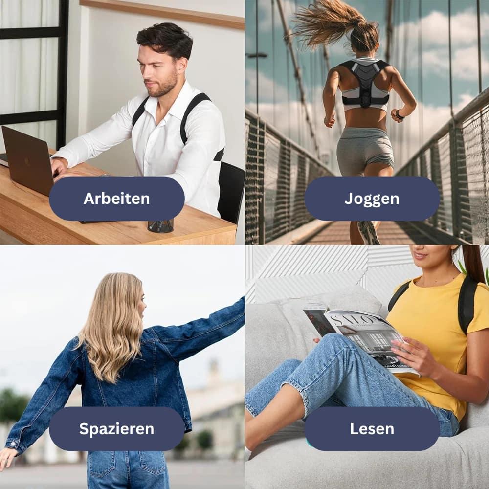 Er unterstützt alle, die ihre Körperhaltung verbessern und Rücken-, Schulter- oder Nackenschmerzen vorbeugen möchten.