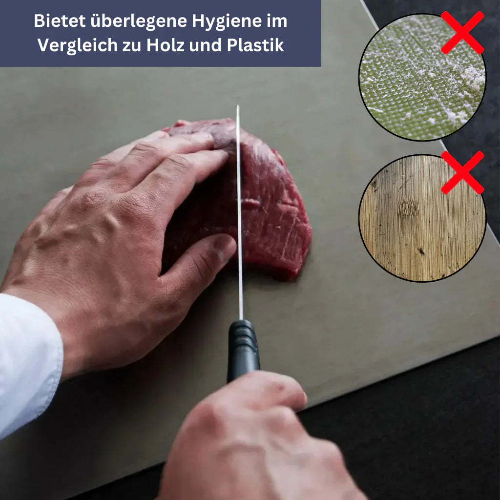 Im Vergleich zu Plastik, das oft schädliche Chemikalien wie BPA enthält, oder Holz, das Bakterien und Schimmel aufnehmen kann, stellt das SteelMaster Schneidebrett eine hygienische und langlebige Alternative dar.