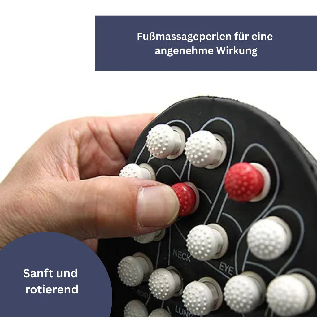 Das wasserdichte Obermaterial schützt vor Feuchtigkeit, während die drehbaren Massageperlen eine gezielte Fußmassage bieten.